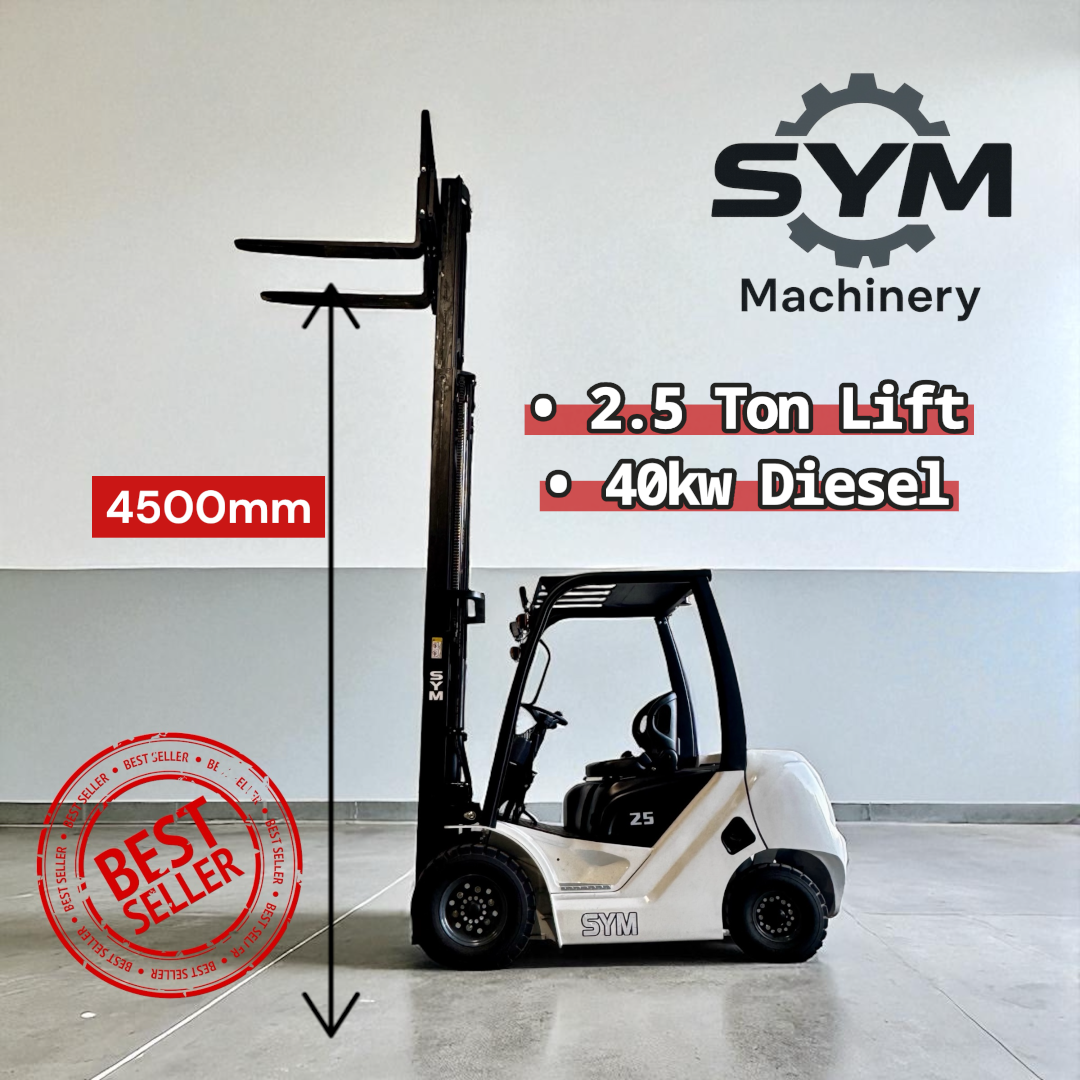 Powerful 40kW Diesel Engine**: The SYM CPC25 is equipped with a robust 40kW diesel engine, delivering exceptional performance and reliability. This powerful engine ensures that you can lift and transport heavy loads with ease, making it perfect for heavy-duty applications.